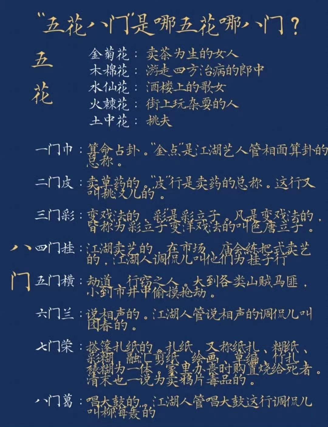 “ 五花八门 ” 你知道是哪“五花”和哪“八门”吗 ?相关图片:——Via